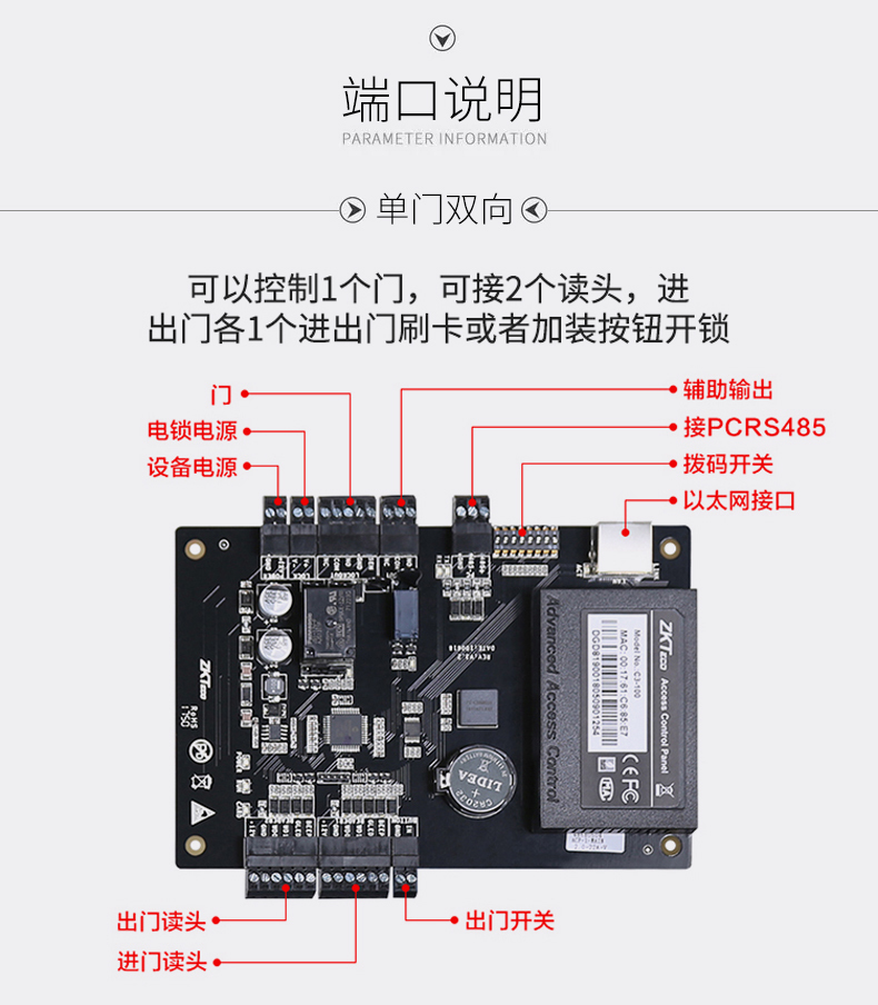 門禁主機:所有人的出入和人員的上傳,包括考勤記錄都是通過門禁主機來控制 的